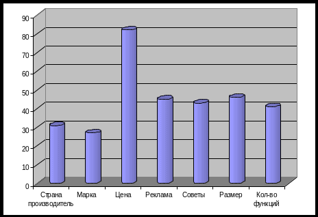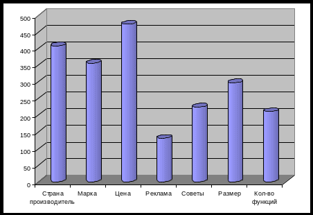 Руководство фирмы считает, что советы друзей, размер оборудования и количество его функций одинаково мало влияет на выбор потребителей. Хотя респонденты отметили, что данные характеристики не особенно влияют на их мнение (четвертое, пятое, шестое места), тем не менее влияние это существует, и совсем сбрасывать его со счетов было не правильным со стороны сотрудников компании. (см. диагр. №4)