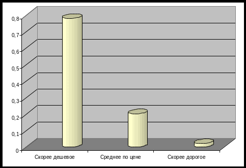 Далее, исследуя цену, как определяющий фактор при покупке, мы спросили, считают ли потребители оборудование, продаваемое в ООО ПКФ «Уралгазкомплект» дорогим, или наоборот, дешевым. Абсолютное большинство респондентов (78%) ответили, что считают данное оборудование относительно дешевым. Это связано с тем, что, как уже говорилось ранее, в магазине представлены только качественные отечественные марки, а не дорогие итальянские, как у большинства конкурентов.