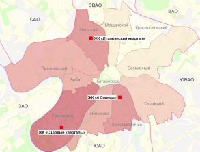 В августе 2009 г. объем первичного предложения в элитном сегменте составил 1 170 квартир или 203,6 тыс. кв. м, активные продажи велись по 35 адресам. Максимальную долю в общем объеме предложения по-прежнему занимал район Хамовники, где по итогам конца лета 2009 г. было сосредоточено боле 85 тыс. кв. м квартир в новостройках на различных стадиях строительства. При этом порядка 1/3 всего предложения в Хамовниках занимал ЖК «Садовые кварталы». В целом, в настоящее время доля вышедших на рынок после наступления кризиса масштабных проектов, таких как ЖК «Садовые кварталы», ЖК «4 Солнца», ЖК «Итальянский квартал», является существенной – более 30% от всего объема предложения.