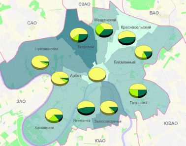 Рис. 6. Москва. Диапазон арендных ставок на торговые помещения по АО г. Москвы
