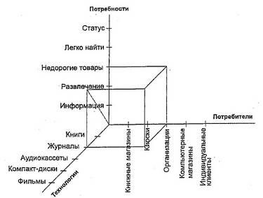 Все возможные потребности, группы потребителей и технологии размещаются вдоль трех осей с целью определения области деятельности. Данные области деятельности включают потребности, потребителей и технологии, с которыми компания работает в настоящий момент. Вдоль осей размещают дополнительные элементы, представляющие собой возможности для развития; такие как новые потребности, которые можно удовлетворить, новые потенциальные потребители и другие технологии, которые можно использовать.
