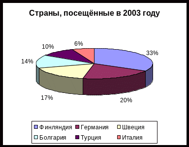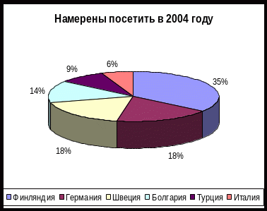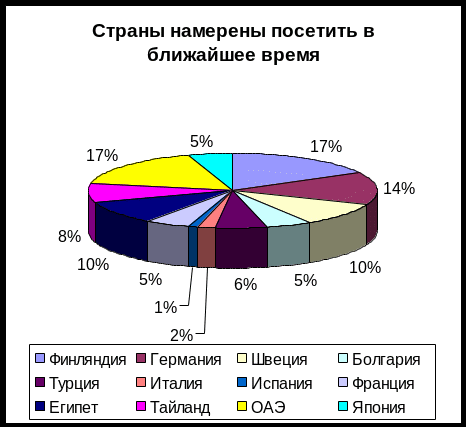 Туристическая компания «Евразия тур» провела собственное исследование для того, чтобы узнать данные о посещаемости стран туристами Санкт-Петербурга. Это исследование проводилось в декабре 2003 года. Данное исследование проводилось методом анкетирование (см. ПРИЛОЖЕНИЕ 2).