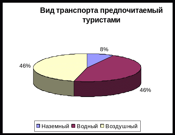 Также по данным исследования видно, что необходимо развивать туры на воздушном и водном транспорте и организовывать круизы. А так как наземный транспорт мало предпочтителен, то необходимо ограничить туры на наземном транспорте (см. ПРИЛОЖЕНИЕ 4).