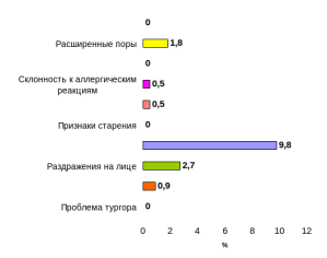 Рис. 1.15 Проблемы с кожей возрастной категории – 30-39 лет