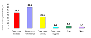 5. Выявлено, что покупки косметических средств потребители совершают один раз в три месяца, что свидетельствует о средней величине спроса на них.