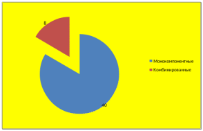 Как видно из таблицы 5, ассортимент эфирных масел формируют в основном монокомпонентные препараты, их доля в структуре составляет 83,3%. Доля комбинированных препаратов составляет 16,7% (рис.3).