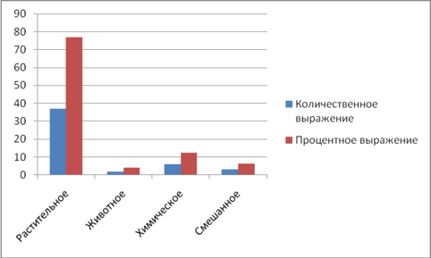 Рис. 2 Структура эфирных масел в ООО «Альтафарм» по признаку происхождения действующих средств