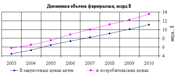 Рис.1 Динамика российского фармацевтического рынка за период 2003-2010 гг.