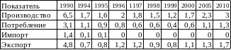 Таблица 1. Баланс производства и потребления стальных труб в Украине в 1990-2000 гг. и прогноз до 2010 гг., (млн. тонн)