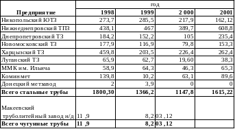 Таблица 1.2 Динамика объема производства трубных заводов Украины в 1997-2001 гг., тыс. тонн (данные: Минпромполитики Украины).