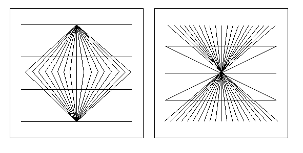 Рис. 3 . Иллюзия веера: расходящиеся в виде веера линии «изгибают» наложенные на них прямые.