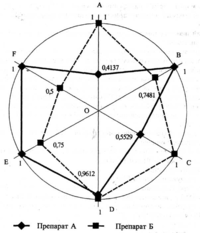 На рис. 2 зображена графічна модель дослідження конкурентоспроможності на прикладі двох препаратів-аналогів.