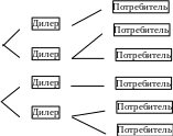 Дистрибьюторы – оптовые и розничные посредники. Производитель предоставляет дистрибьютору право торговать своей продукцией на определенной территории и в течение определенного срока. По договору им приобретается право продажи продукции. В логистической цепи дистрибьюторы обычно занимают положение между производителем и дилерами (рис.5)