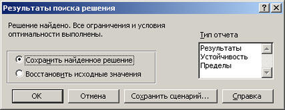 Рис. 11. Диалоговое окно Результаты поиска решения
