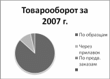 При анализе данных по объемам реализации товаров в разрезе методов продажи, отраженных в таблице 3.4 видно, что основную долю в товарообороте магазина №3 занимает продажа товаров по образцам. Товаров по образцам в магазине в 2007 году было продано на сумму 4 156,56 млн. руб., что составляет 86,6% от всего товарооборота. Продажа традиционным методом (через прилавок) занимает небольшую долю товарооборота – 9,9% (473,83 млн. руб.).