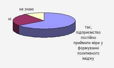 Отже, більша частина опитаних респондентів вважають, що підприємству необхідний позитивний імідж, тобто, більшість респондентів признають важливість PR-кампанії районного споживчого товариства.