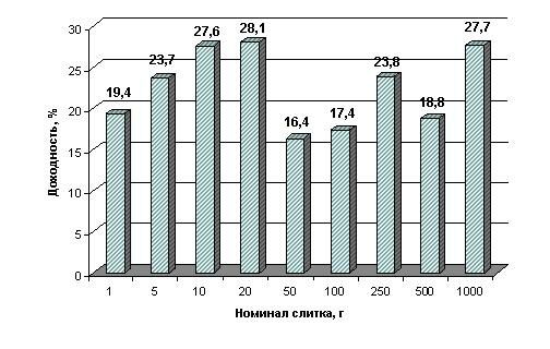 Динамика цены продажи Национальным банком золотого слитка номиналом 100 г в 2008 г.