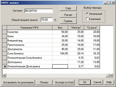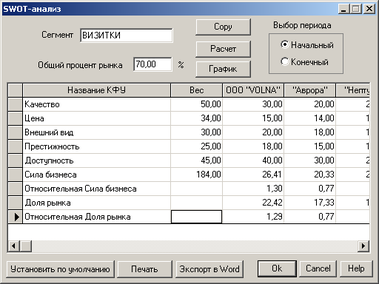 Рис.4. Диалоговая панель "SWOT-анализ" с результатами расчетов