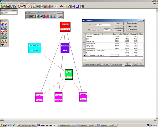 Проведение анализа результатов вычислительных экспериментов по решению задач построения конкурентной карты рынка и расчета "силы бизнеса" (SWOT - анализа).