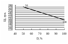 Рис. 2. График зависимости прогнозируемой доли рынка D от цены на товар Ці