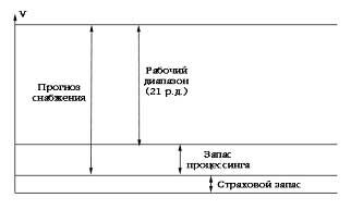 Максимальный размер заказа, формируемый системой, не может превышать суммы рабочего диапазона РД (21 рабочий день), запаса процессинга и страхового запаса.