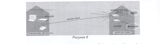 Рис. 1. Схема предоставления доступа в Интернет посредством аналогового модема