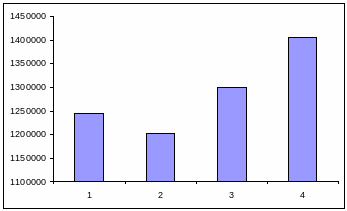 Как видно из рис. 5.2, выручка предприятия за год значительно увеличивается, однако динамика ее неравномерна (во втором квартале заметно снижение).