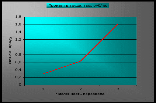 Далее представлен рисунок 2.3- производительность труда. Количество продукции, произведенное в единицу времени одним работником называется производительностью труда.