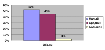 ООО «Термопласт» занимается выполнением заказав малого и среднего объемов, так как выполнение заказав большого объема так же приведет к затариванию склада, но данная ситуация почти полностью идентична той, что мы видели на примере сроков заказа и связана с ней рис. 5.