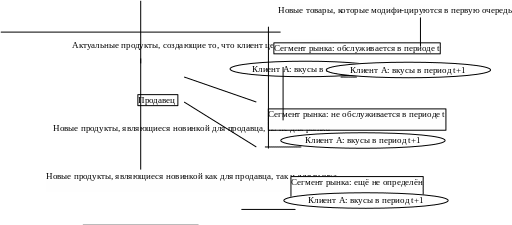 На рисунке 1. представлен широкий спектр действий предприятия, который охватывает стратегию нового продукта: попадание с модифицированным продуктом на существующий рынок и/или уменьшение расходов, разработка новых продуктов как расширение ассортимента, как развитие рынка или также как развитие видов деятельности, которые являются новыми как для предприятия, так и для рынка в целом.