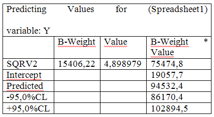 А так как коэффициент Durbin-Watson= 1,660515, то есто близок к 2 следовательно автокорреляции нет, и остатки независимы между собой. Учитывая нормальные характеристики уравнения регрессии можно составить прогноз.