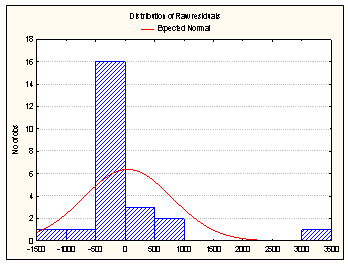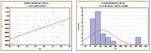| Regression Summary for Dependent Variable: X3 (Spreadsheet1) R= ,30199164 R?= ,09119895 Adjusted R?= ,04988981 F(1,22)=2,2077 p<,15151 Std.Error of estimate: 779,12 | ||||||