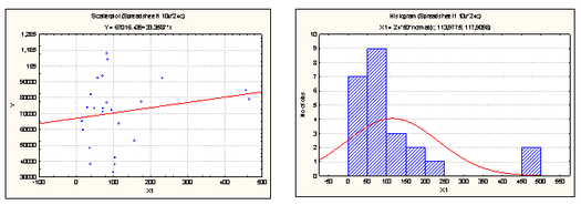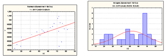 Рисунок № 2. Диаграмма рассеивания и гистограмма Х2