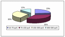 | 150–300 руб. | 2065 | 30,46 | 2005 | 30,75 | 97,09 |