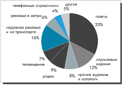 Причем доля печатной рекламы в России стабильно занимает лидирующие позиции. Такая тенденция характерна и для других стран, в том числе с развитой рыночной экономикой22.