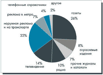 Рис.1.4. Структура рекламного бюджета «средних» рекламодателей Санкт-Петербурга