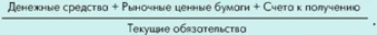 Замыкает минимальную систему показателей — показатель ликвидности, который дополняет два предыдущих показателя оборачиваемости, т. к. выступает своеобразным противовесом. В самом деле, исходя из приведенных ранее рассуждений, менеджер предприятия должен стремиться к улучшению показателей оборачиваемости. Одним из наиболее очевидных средств является уменьшение дебиторской задолженности и товарно-материальных запасов. В то же время, это приводит к ухудшению ликвидности предприятия и, стало быть, к уменьшению возможности получения выгодных кредитов.