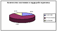 Исследование показало, что один костюм в любом случае должен быть в гардеробе каждого мужчины, так как его можно одеть в праздник или на какое-то торжественное мероприятие. Но поскольку большинство мужчин достаточно часто носит костюмы, количество костюмов распределяется следующим образом. Предполагалось, что большинство респондентов имеет костюм: 1 —2 повседневных и, так сказать, «на выход» — этим и объясняется наличие у 70% респондентов 2—4-х костюмов. Ну и, конечно же, количество костюмов зависит от дохода мужчины, поэтому даже если он носит костюмы всегда, но может купить себе только один костюм, то у него и будет один костюм. А мужчина, хорошо зарабатывающий, не может себе позволить появляться, даже редко, в одном и том же костюме, поэтому он приобретает 2 и более костюмов. Предполагалось, что мужчины, поскольку они главы семей, много работают и планируют свой поход за костюмом, однако результаты исследования дали неожиданный результат: 50% ответили, что планируют покупку костюма заранее, а 50% — что не планируют. Следовательно, не только женщины совершают импульсивные покупки, но и мужчины. Вероятнее всего, мужчины, как и женщины, обращают внимание на витрины магазинов (а именно в магазинах большинство опрошенных покупают костюмы – 68%), и красиво оформленные витрины привлекают их для совершения покупки.
