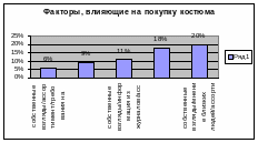Несмотря на то, что в анкете содержалось предложение указать 3 основных фактора, влияющих на приобретение костюма, 19% респондентов указали лишь 1 или 2 фактора. Отметим, что в ответах присутствовали факторы в следующем процентном соотношении: