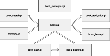 Функции Интернет-магазина сгруппированы в модули, но как определить связь между конкретной функцией и модулем? В проекте все имена функций включают префикс, определяющий модуль, к которому относится функция. Например, функция, ответственная за сбор данных о подкатегории, называется navigation_ Subcategory и находится в модуле book_navigation.pl.