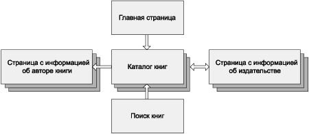 С главной страницы Интернет-каталога пользователь переходит на страницы каталога, в котором представлен список книг и их краткое описание, указаны ссылки на информацию об авторе, написавшем книгу, и издательстве, ее выпустившем. Информация об авторе состоит из краткой биографической справки и списка книг этого автора, представленных в Интернет-каталоге. Аналогично, страница с информацией об издательстве содержит описание издательства и список книг, выпущенных им и продаваемых в Интернет-каталоге.