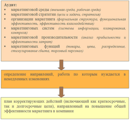 Аудит маркетинга представляет собой всеобъемлющую, систематическую, независимую и периодическую проверку внешней среды маркетинга, целей, стратегий и отдельных видов маркетинговой деятельности для организации в целом или для ее отдельных хозяйственных единиц (рисунок 2).