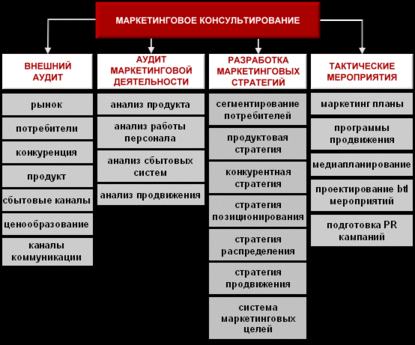Для принятия тактических решений ключевой задачей аудита маркетинга является оценка деятельности компании по основным направлениям маркетинговой политики: ассортименту, цене, продвижению и формированию сбытовой сети.