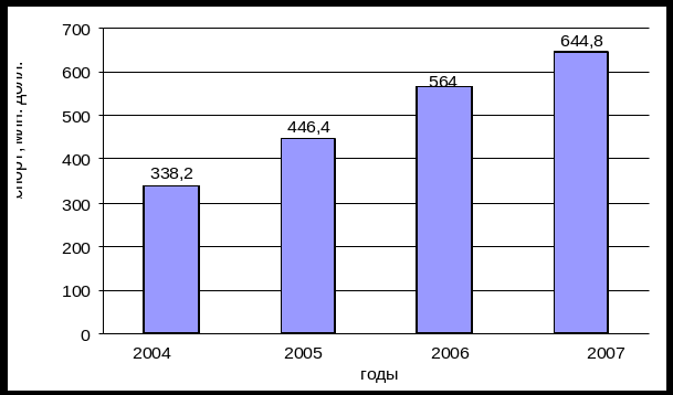 Динамика экспортной выручки за 4 года представлена на диаграмме (данные за 2007 год представлены за 10 месяцев):
