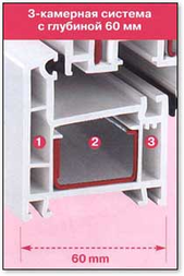 Глубина рамы и створки составляет 60 мм.