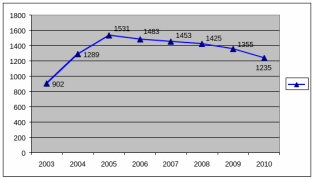 Исследуемый продукт появился на приливках магазина в 2003 году, и за год было реализовано 902 единиц. В настоящее время продукт находиться на переходе от стадии роста к стадии зрелости, так как рост продаж еще наблюдается, но происходит снижение его темпов. Рост прогнозируется в течение ближайших 3-4 лет на 2-3 % в год. Для сохранения своих позиций продуктом на рынке можно провести следующие мероприятия: