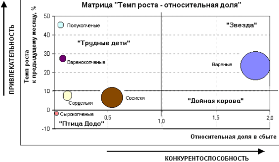 Рис.9. Модель продуктового портфеля предприятия (BCG)