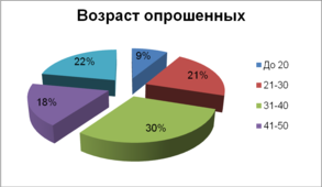 Из выбранной целевой аудитории, преобладающим количеством опрошенных оказались граждане 31-40 лет, что составило 30%. затем шли, те кому больше 50, в основном пенсионеры.21% составили люди в возрасте 21-30 лет.18% -41-50 лет, и 7% составили студенты и учащиеся, до 20 лет.