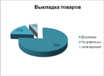 На вопрос ‘’Устраивает ли вас выкладка товаров в магазине "Магнит"’’ - 76% опрашиваемых ответили, что они довольны выкладкой товара, 17% не устраивает то, как лежит товар на прилавке, многие не могут ознакомиться с товаром, из за узких проходов и низких прилавках, и 7% указали, что очень часто ценники не соответствуют товарам, это может вызвать конфликтные ситуации на кассе (Рис.8).
