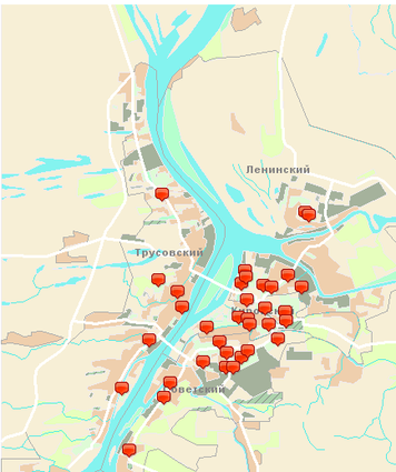 Рис.11 Размещение магазинов "Магнит" в городе Астрахани